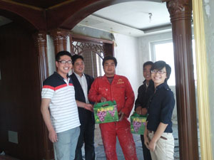 中秋佳節(jié)臨近,久冠裝飾為還在工地現(xiàn)場忙碌的工人送去水果送去溫暖。在此祝愿一如既往支持我們久冠的朋友中秋節(jié)快樂!