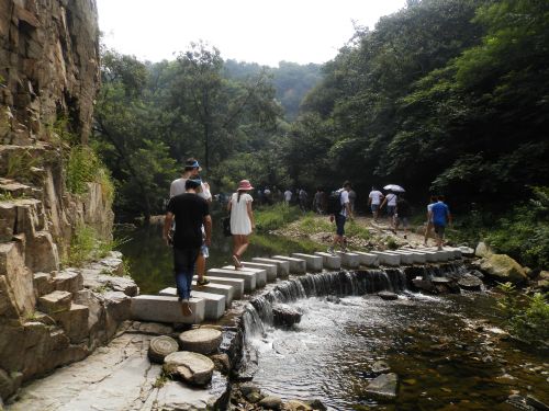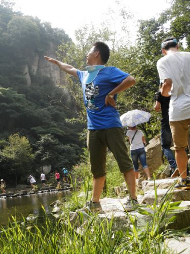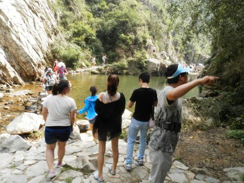第一站到達日照九仙山。大家利利索索的下了車,來到素有“奇如黃山,秀如泰山 ,陷如華山”而著稱的九仙山風景區(qū),賞漫山遍野的萬畝野生杜鵑園,靴石,孫臏書院等,置身天然氧吧、領(lǐng)略龍?zhí)洞髰{谷風情,形成一個蔚為壯觀的瀑布群。